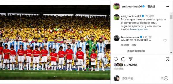 9月11日讯 在北京时间今天早上结束的南美世预赛中,阿根廷客场1-2不敌哥伦比亚。阿根廷门将马丁内斯在社交媒体上晒出首发球员的合照,并写道:“还有很多需要改进的地方,但我们的渴望和承诺一直都在。我们仍然排名第一并充满热情。” 标签: 足球 英超 阿斯顿维拉 阿根廷