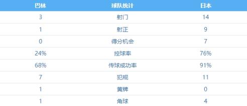 09月11日讯 世预赛18强赛,日本客场5-0大胜巴林。日本门将铃木彩艳在赛前称“在传中数和射门数方面,巴林队会比中国队更多。”结果巴林在对日本的比赛中完成了3次射门,确实比国足多了2次。传中方面,国足和巴林都是完成了5次。 标签: 足球 国家队 中国男足 中国足球 日本 中超